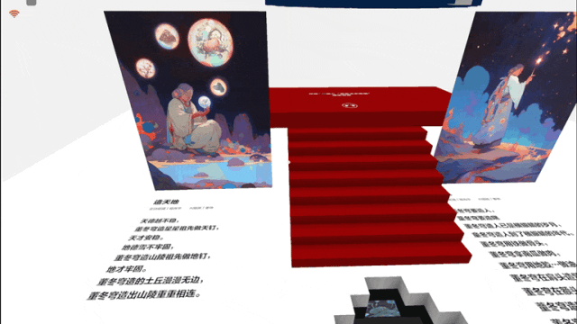 “嘿!亚鲁!(苗语:Heid!Yax Lus!)”是以苗族英雄史诗《亚鲁王》为主题的虚拟展览,展示了一场由 AIGC 复现的 “苗族宇宙” 图景——从天地形成、人类起源,到文化发明、战争迁徙。借由亚鲁王文化中 “下界” 与“天界”的生命循环观,讲述了从 “现实人间” 到“天极家园”的空间叙事。