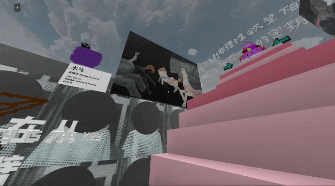 展览的结尾,观众可以通过传送门再次回到起点,并进入一条 “秘密通道”,艺术家 Yiqi 的作品《造日月,射日月》是本次展览的彩蛋。